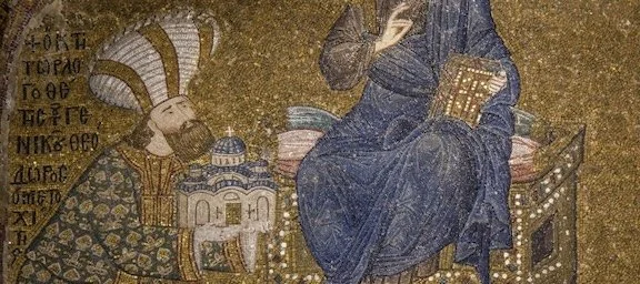 Theodore Metochites and Christ mosaic, detail, ca. 1316–1321. Chora church, Constantinople (Istanbul)